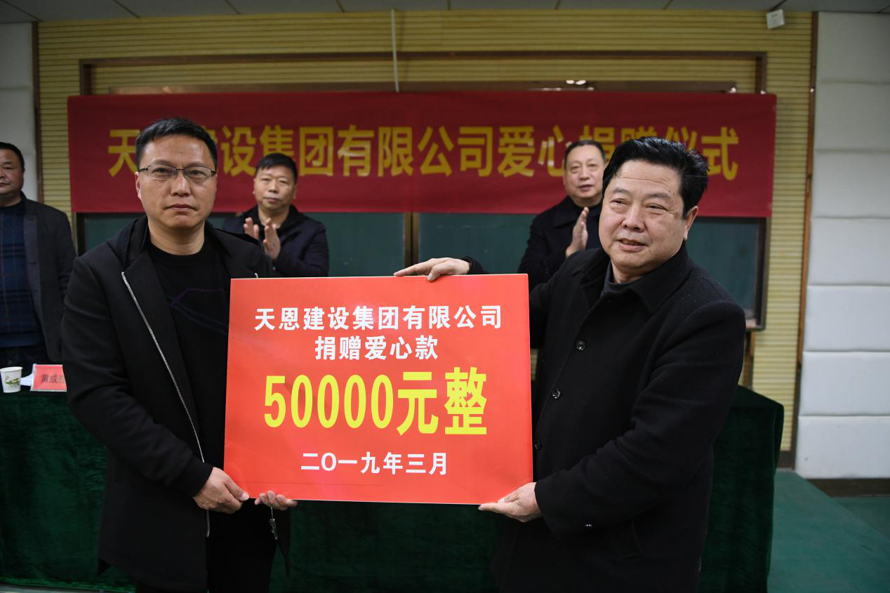 捐資助學、扶貧濟困是中華民族的傳統美德,是事關人才培養、社會進步的千秋大業,也是全社會的共同責任。總口管理區黨委表示,天恩建設集團有限公司落戶總口,促力總口實現高質量發展,為推進工業經濟穩步增長,做出了巨大貢獻。天恩建設集團在事業發展的同時不忘回饋社會,回報總口父老鄉親,積極開展捐資助學、扶貧濟困的愛心和善舉,表示衷心的感謝。