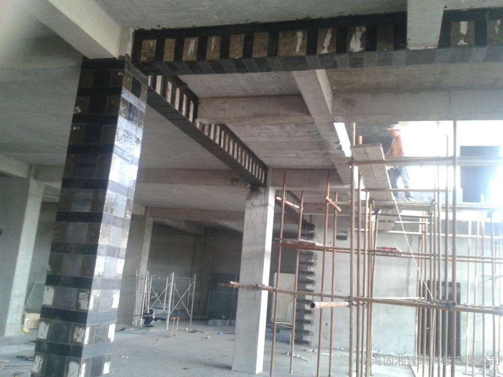不足之處:完成質(zhì)量在很大程度上依賴碳素纖維布和專用結(jié)構(gòu)膠的選取,而現(xiàn)在市場上纖維材料和結(jié)構(gòu)膠質(zhì)量參差不齊,價格相差比較大,這樣也就有些自身要求不嚴(yán)格的施工單位沒有嚴(yán)格按照設(shè)計要求選擇材料,而材料是決定此加固方法效果的關(guān)鍵。還有就是本身方法的缺陷,兩種不同材料的共同工作問題,規(guī)范雖然作了滯后效應(yīng)的考慮,但實際當(dāng)中加上施工的誤差,材料本身的差異,理論跟現(xiàn)實是有較大出入的。且加固規(guī)范要求此法在加固時不能超過原構(gòu)件承載力的40%,另現(xiàn)場施工時還要注意防火問題。