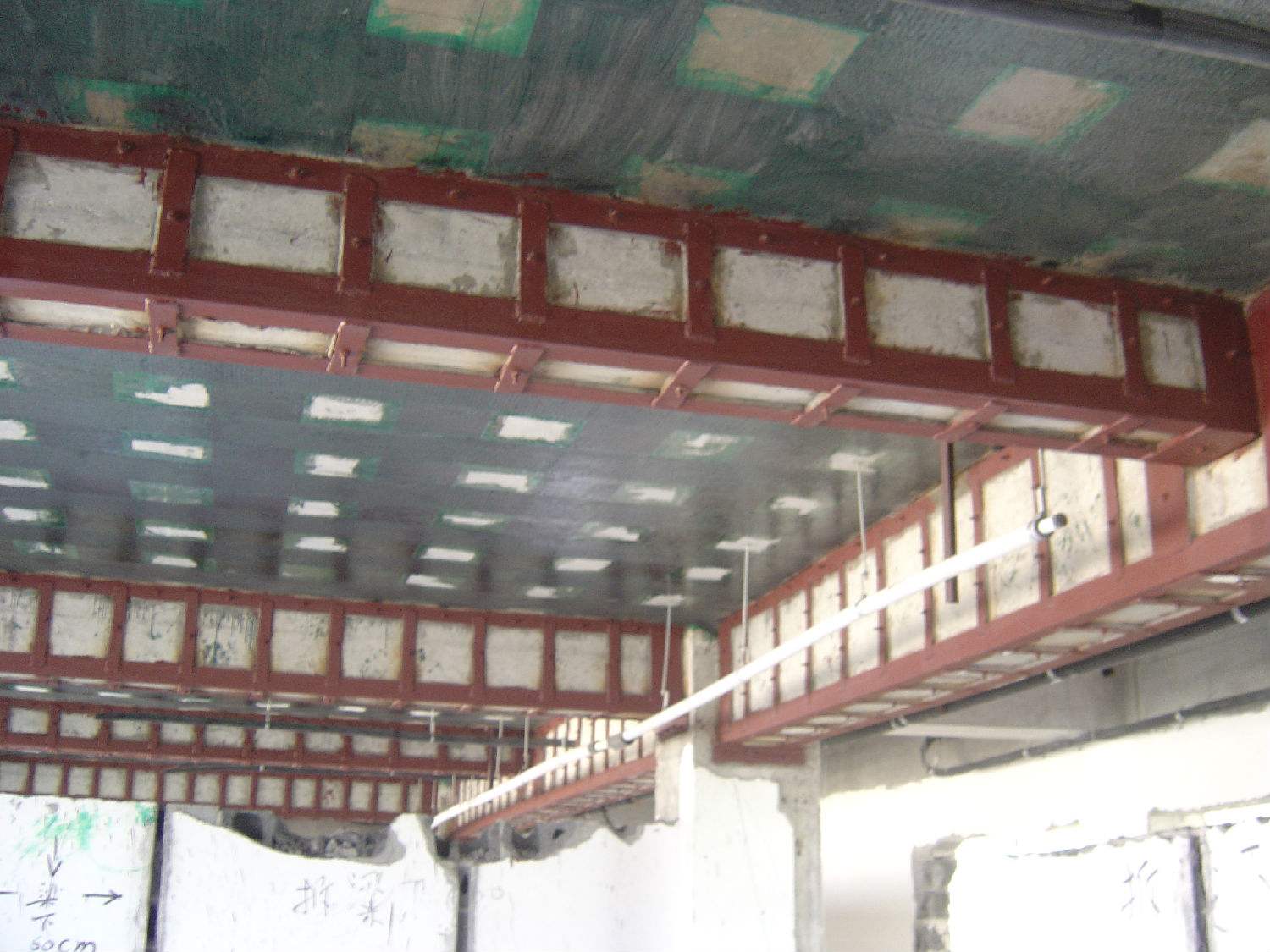 (3)端部錨固長度有要滿足規(guī)范要求,具體加固時,因為梁兩端的支座的障礙,這就需要再花費一翻腦筋;